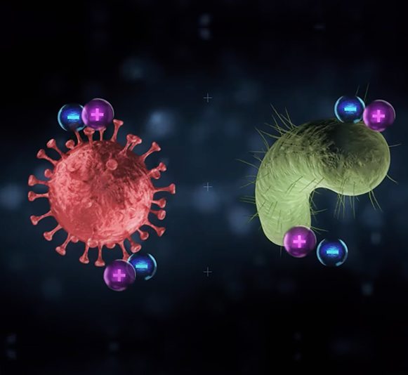 Otherwise known as Bipolar Ionization, it’s a process that creates a mixture of positive and negative ions. When released into the air, these ions fully break down airborne contaminants — rather than merely pushing them aside.